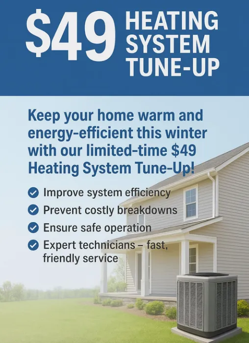 Keep your home warm and energy-efficient this winter with our limited-time $49 Heating System Tune-Up